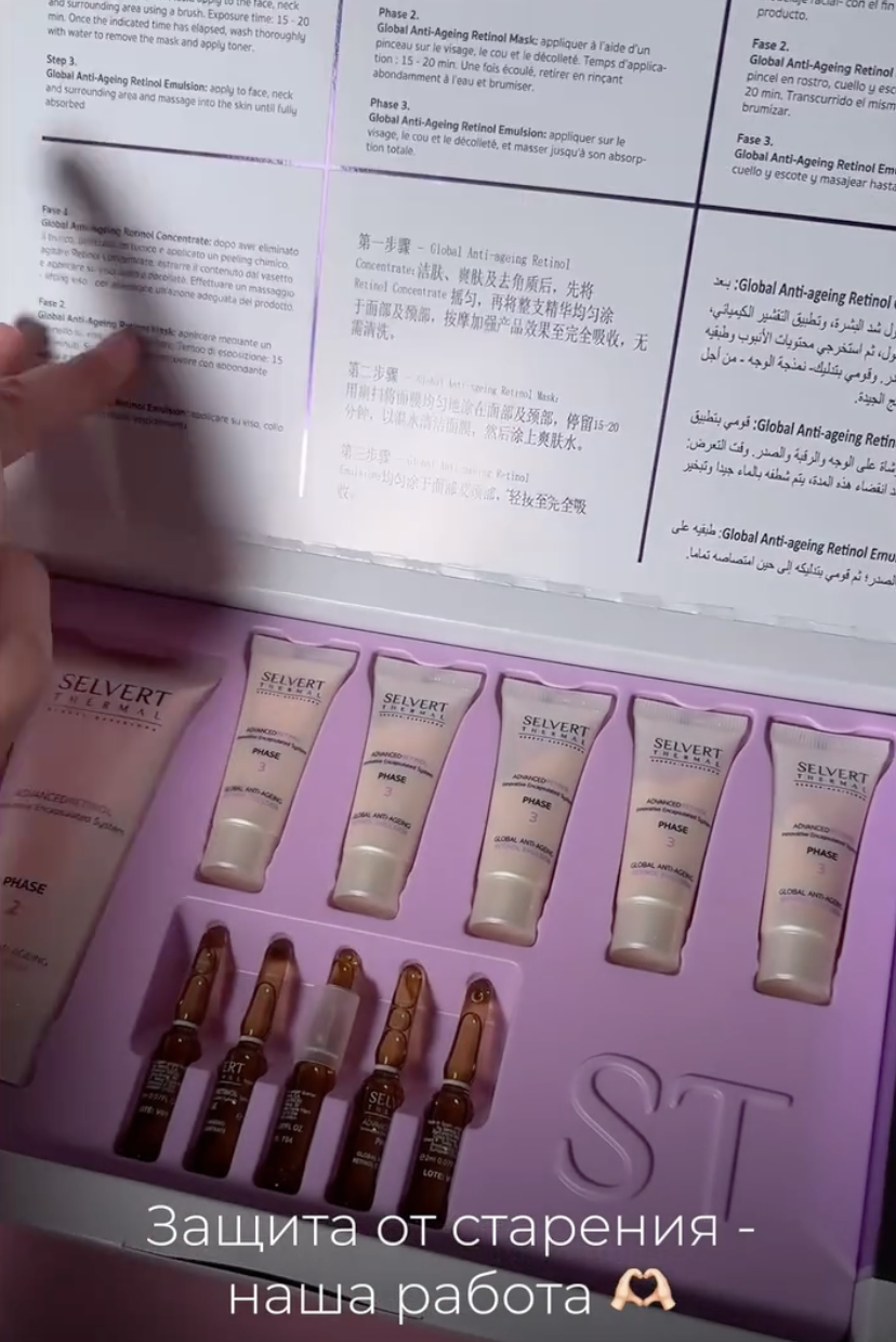 Знакомьтесь с интенсивной антивозрастной линией Selvert Thermal! В её основе — прорывная система инкапсулирования чистого ретинола. Эта технология-помощник доставляет активное вещество в глубокие слои кожи, работая максимально эффективно, но при этом бережно.